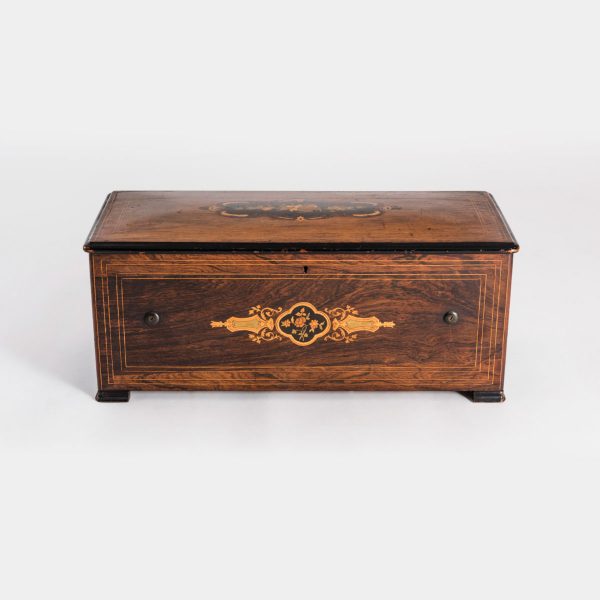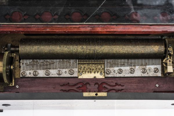 playing 8 airs – the gamme no. 29 (taken from the original tune sheet) from a 16″ long cylinder and was retailed by Perkins and Gotto London and the box bears the original label.